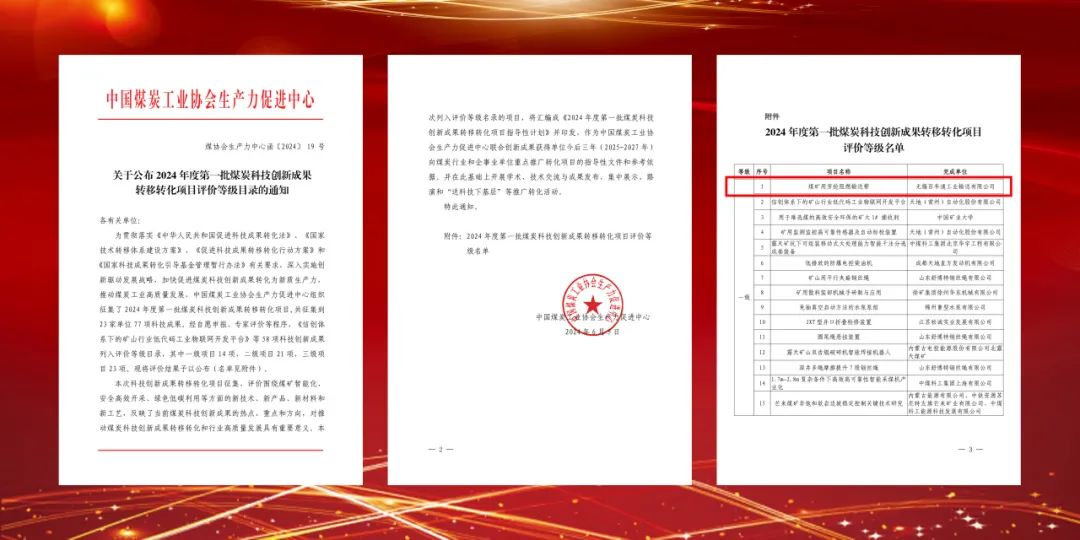 此次被中国煤炭工业协会列入煤炭科技创新成果转移转化项目一级目录,是行业对J9九游会自主创新能力的高度认可。未来公司将继续坚持科技创新,依托对市场与需求变化的洞察以及丰富的实践经验,开发更多助力煤炭行业安全高效开采、绿色环保节能的新产品!
